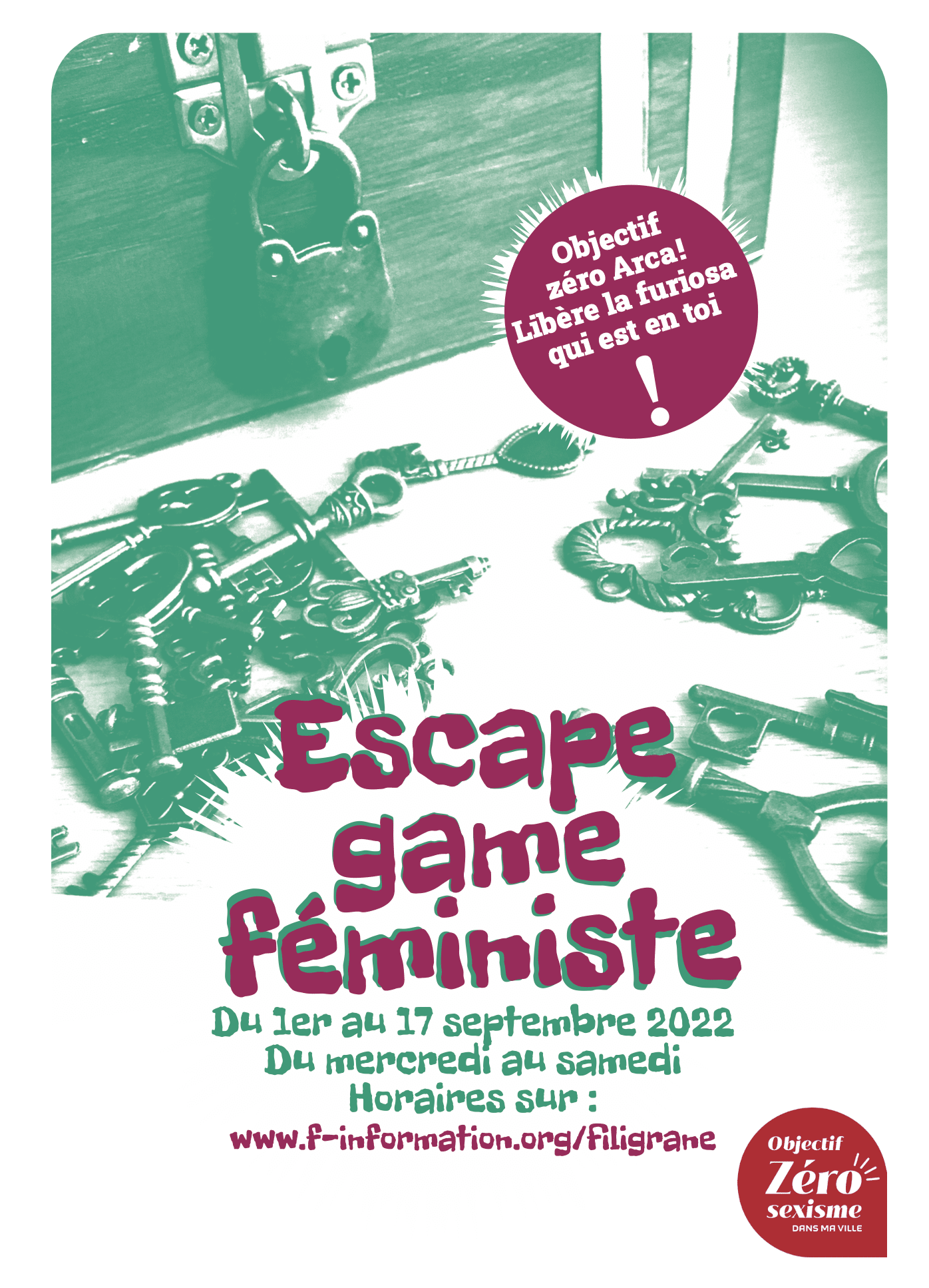 Du 1er au 17 septembre 2022, la bibliothèque Filigrane vous propose de nouvelles sessions de son Escape game féministe « Objectif zéro Arca ! Libère la furiosa qui est en toi ! »